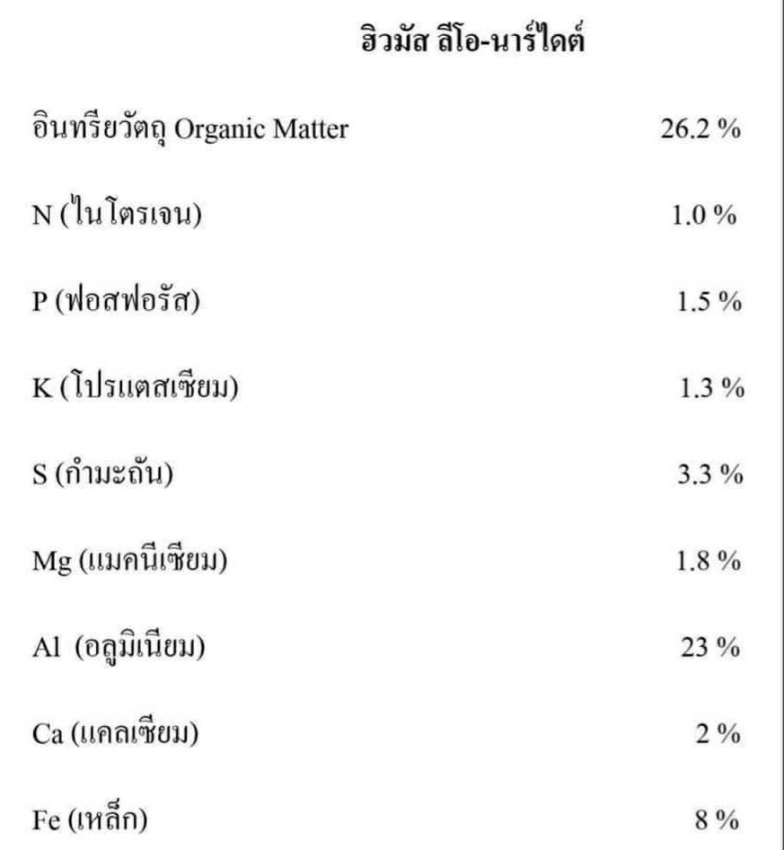 ** ส่วนประกอบของปุ๋ยฮิวมัส มี อินทรีย์ วัตถุ ถึง 26%***